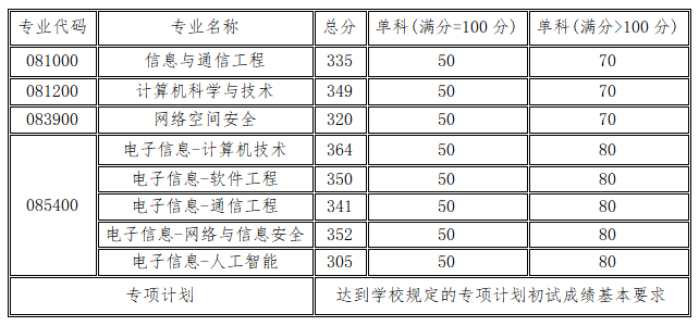 二、复试分数线及分专业招生计划