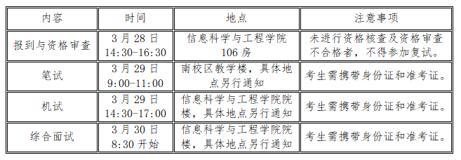 复试具体时间及地点安排