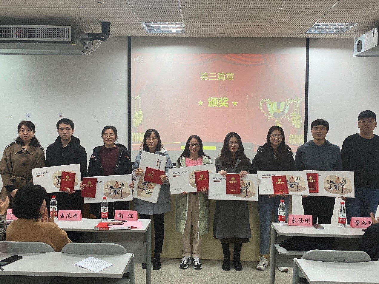 大会最后一项——颁奖环节。首先进行研究生疫情期间返校志愿服务队颁奖,他们是——丁岩、黄诗华、唐聪、左若梁、黄舒颖、黄小平、马全雨、陈书圆、梁媛、黄峥、王莹、汪铭林、胡由钻、侯静、朱帅、龙勃、郭治卿、陈明月、梁剑明、李怡心、蒋孜博。向江书记和宋任刚老师为他们颁发获奖证书及奖品。