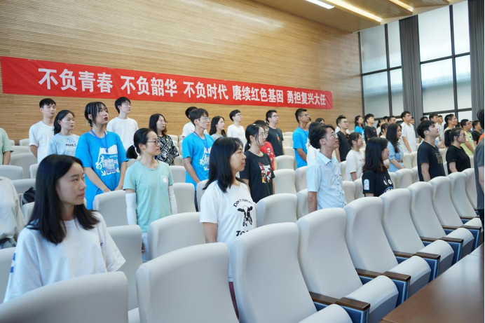 开班仪式第一项,全体成员起立并奏唱国歌。礼毕后,首先由张国田老师简单介绍本次发展对象培训班的基本情况。本次培训班共有参训学员86人,分为6个学习小组。培训采取线上与线下相结合的方式进行,线上培训主要依托国家教育行政学院大学生网络党校平台组织实施。线下培训由学院党委组织实施,包括开班仪式、社会实践、交流研讨、撰写思想汇报、拍摄“党员好故事”主题微视频、结业仪式等。从线上到线下,从课堂到课外,再从理论知识到社会实践,从多方面多维度对发展对象进行培养。