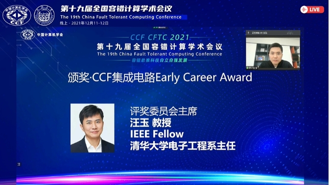 大会召开首日第一项重要活动就是揭晓今年的CCF 集成电路 Early Career Award。中国计算机学会 “CCF 集成电路 Early Career Award”针对工作不超过 6 年的青年学者设立,为从事集成电路方向的青年学者早期职业生涯提供支持,每年评选出不超过1位青年学者作为获奖者,这是中国计算机学会体系内目前唯一的一个集成电路专业奖项,今年已是第四年,本届评奖委员会主席、清华大学电子工程系主任、IEEE Fellow汪玉教授主持了该奖项颁奖。