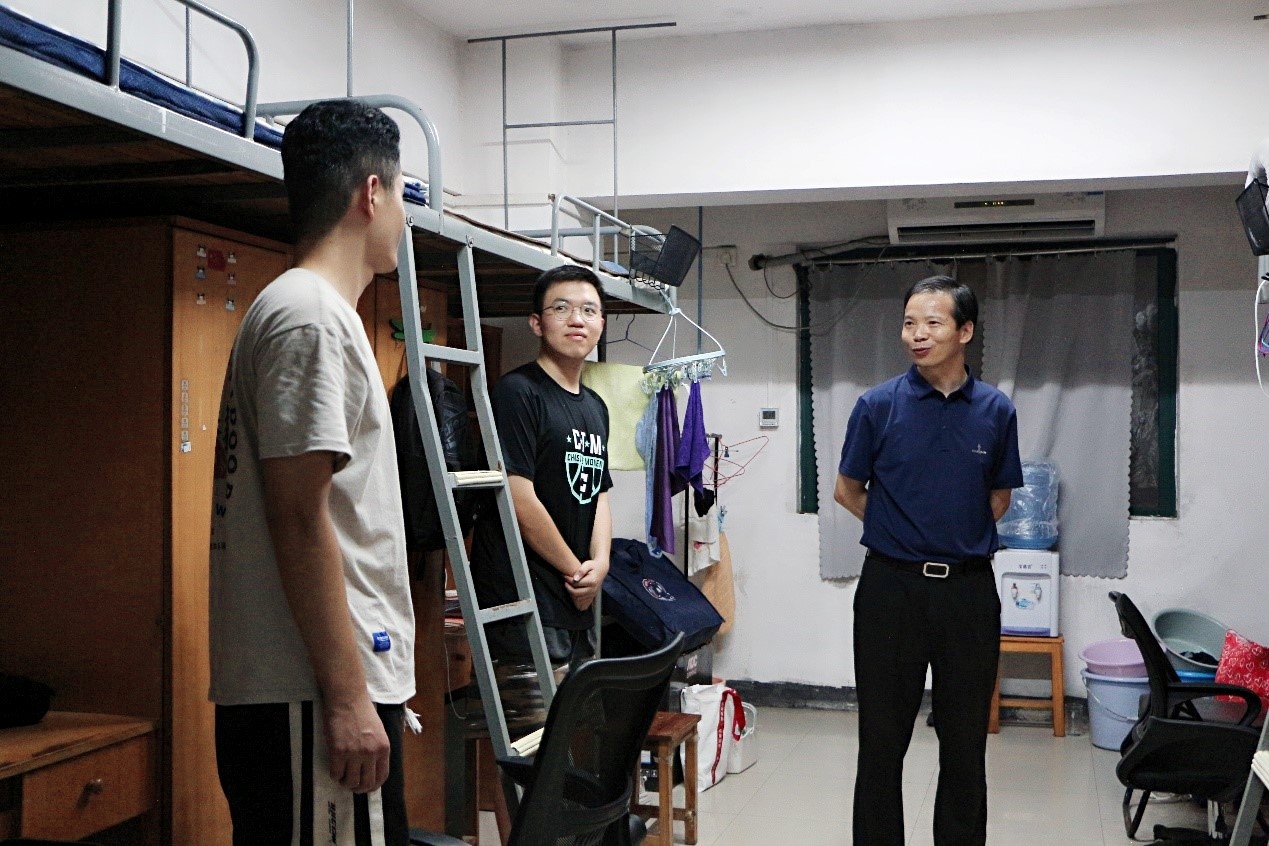 学院本科2022级新生班主任在所负责班级的宿舍看望新生,了解同学们的兴趣特长和个人大学规划,帮助同学们尽早适应大学生活,树立远大理想。