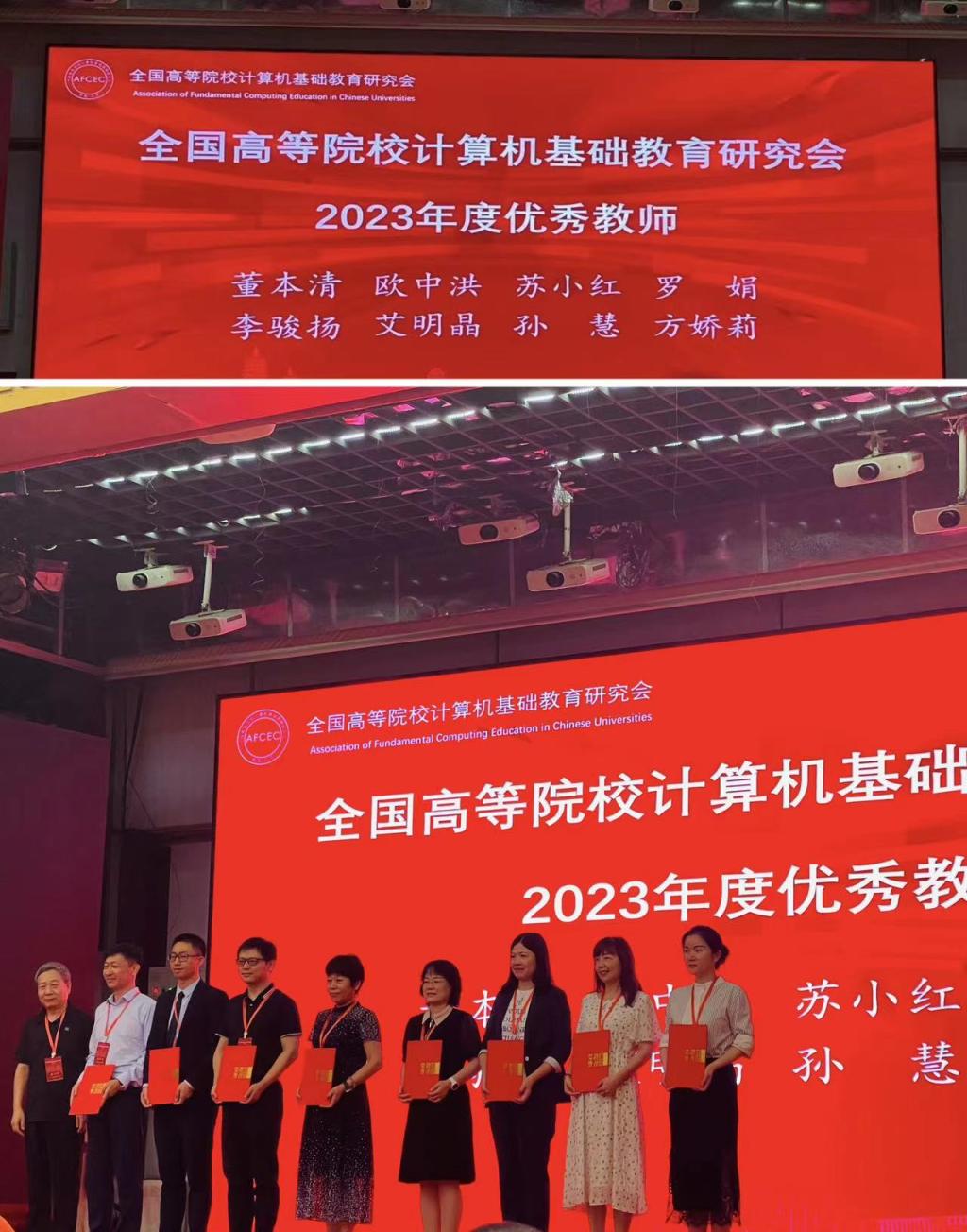 2023年8月2日-8月4日,全国高等院校计算机基础教育研究会学术年会在太原举行。我院罗娟教授以在计算机基础教育领域取得的优异成绩和贡献喜获“计算机基础教育优秀教师奖”殊荣。