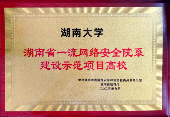 获批“网络空间安全”一级学科博士学位授权点,成为目前湖南省拥有网络空间安全一级学科博士点的唯一非军事院校。