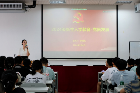 院楼展开,讲座由罗晓岚老师主讲,2024级全体新生参加。罗老师系详细阐述了党的基本理论和组织结构,强调了大学生参与党组织活动的必要性和重要性。她指出,作为新时代的青年学生,必须树立正确的价值观,积极投身到社会主义建设中,承担起时代赋予的责任与使命。