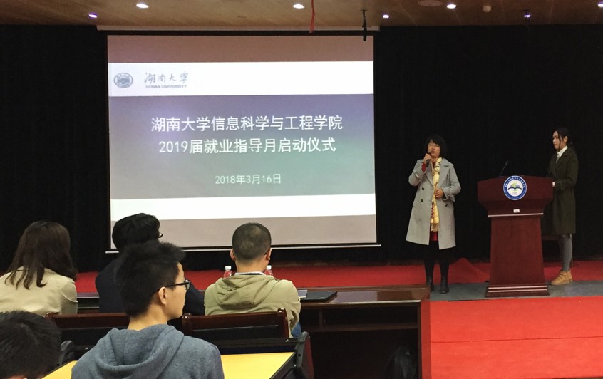 2019届就业指导月启动仪式暨第一场就业指导讲座在院楼330拉开帷幕。华为技术有限公司李国平、裴宇、周晓强、朱明、李梦颖、宋鹏飞6人专家团,和学院学工办李新星、贾玲玲、宋任刚3位老师一起,为2019届毕业生指点迷津。