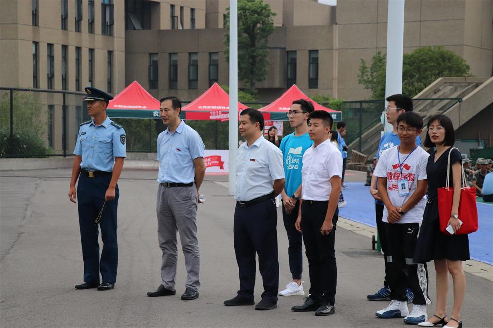 党委书记杨忠旺书记、党委副书记贺迅书记、2018级辅导员王曦老师、李耀老师来到训练场询问新生们的军训进展。军训标兵们进行了踢正步、走齐步的展示。看到同学们昂首挺胸迈步前进的飒爽英姿,每位老师的脸上都露出了欣慰的笑容。之后,书记一行又对其他方阵进行了巡回式的慰问,对同学们的军训成果表示赞赏与肯定,并对这一段时间的军训进行了总结并提出看法。