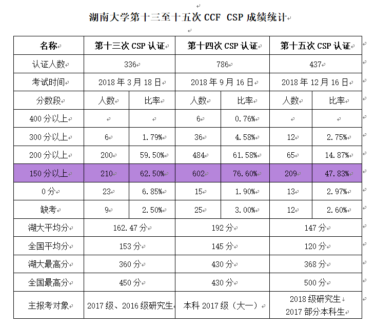 认证点共组织1575人参加CSP认证,其中本校学生1559人(免费参加认证学生人数612人),150分以上的1021人,占总人数65.5%,认证人数排名全国122所认证点第一。