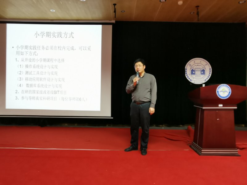 首先,党支部书记欧阳柳波老师详细讲解了软件工程系16级学生面对即将到来的小学期学习以及企业实习的注意事项,并且提出指导建议,对于实习地点选择的利弊进行了详细分析,同时号召16级学生利用好大三这个宝贵的假期。