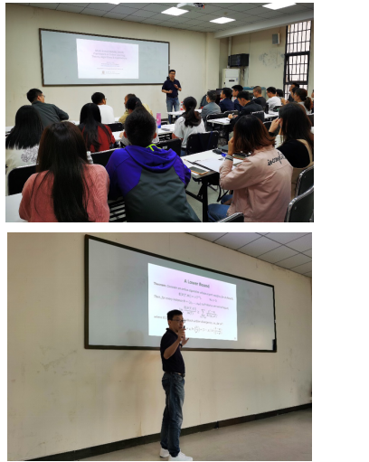 蒋洪波教授主持,香港中文大学吕自成教授来我院进行了学术交流访问,并以“Multi-armed Bandits (MAB) Framework in Online Learning: Theory, Algorithms & Applications”为题做了精彩的学术报告。该报告全面而详细地介绍了吕自成教授课题组针对MAB (Multi-armed Bandit)问题展开的一系列研究工作,吸引了学院众多相关领域的老师和研究生参会。