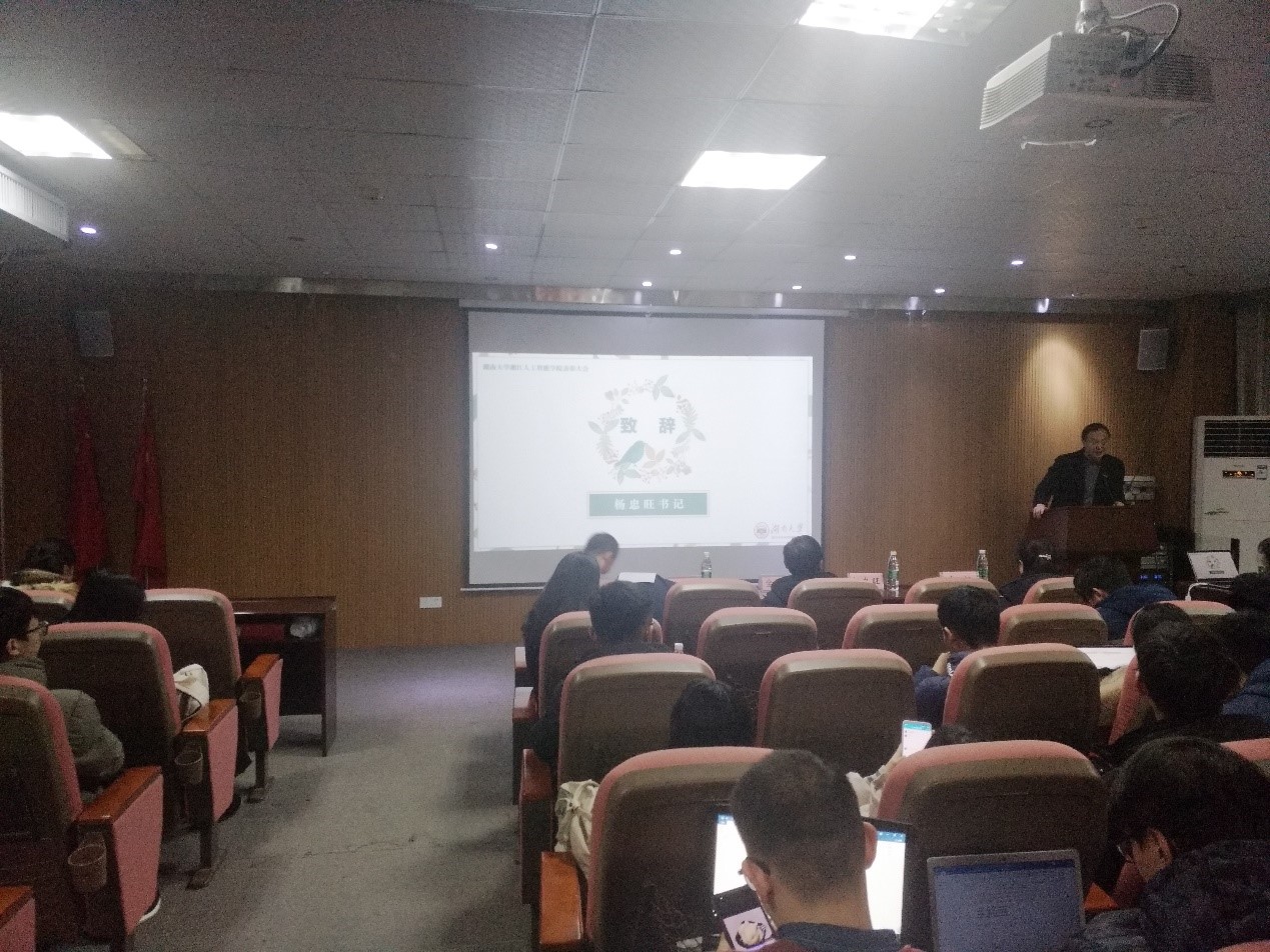 党委副书记向江、学院教务办主任李明媚、16级辅导员杨宝存以及16、17级全体湘江人工智能学院同学。