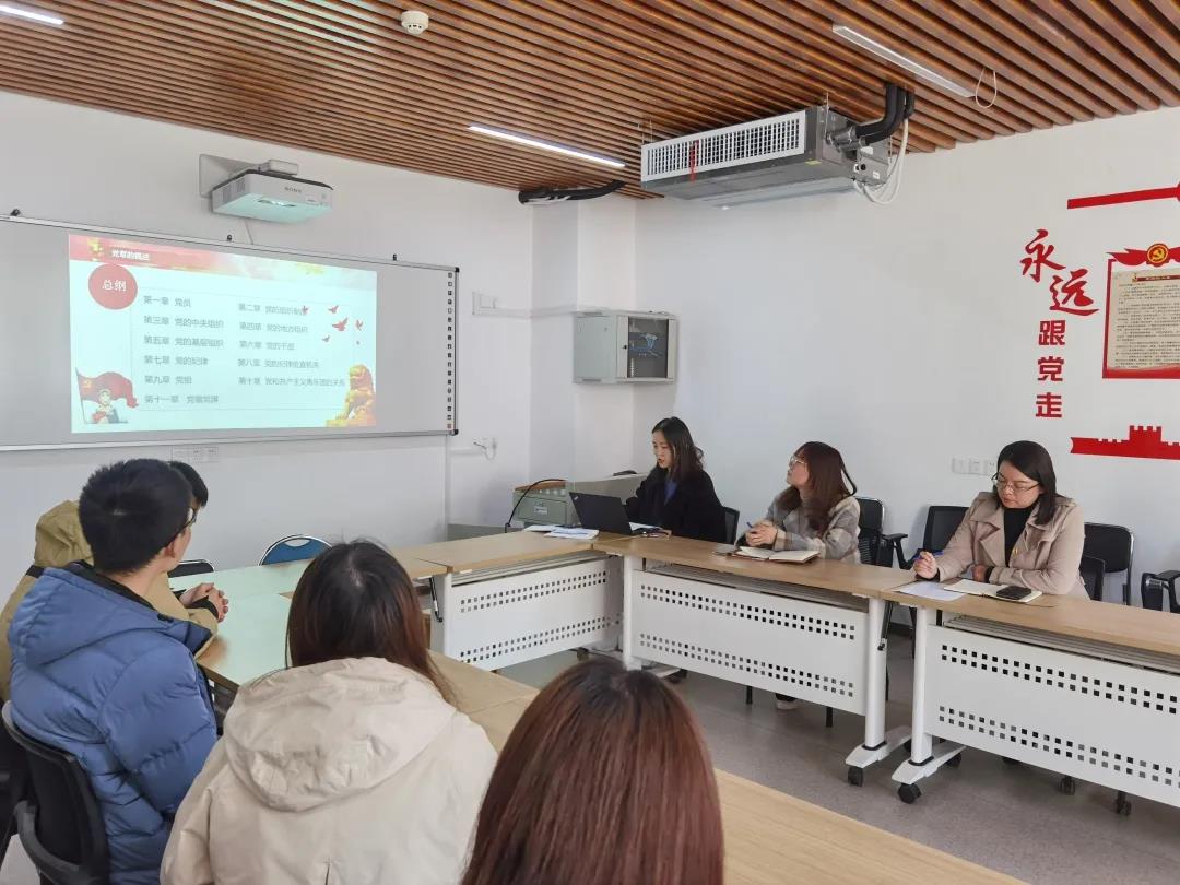 张露同志带领各支部书记从党章的概述、党章的发展历程、党章的总纲部分以及学习践行党章,争做合格党员四个方面进行了学习,从学习党章、遵守党章、贯彻党章、维护党章四个维度进行了整体梳理。