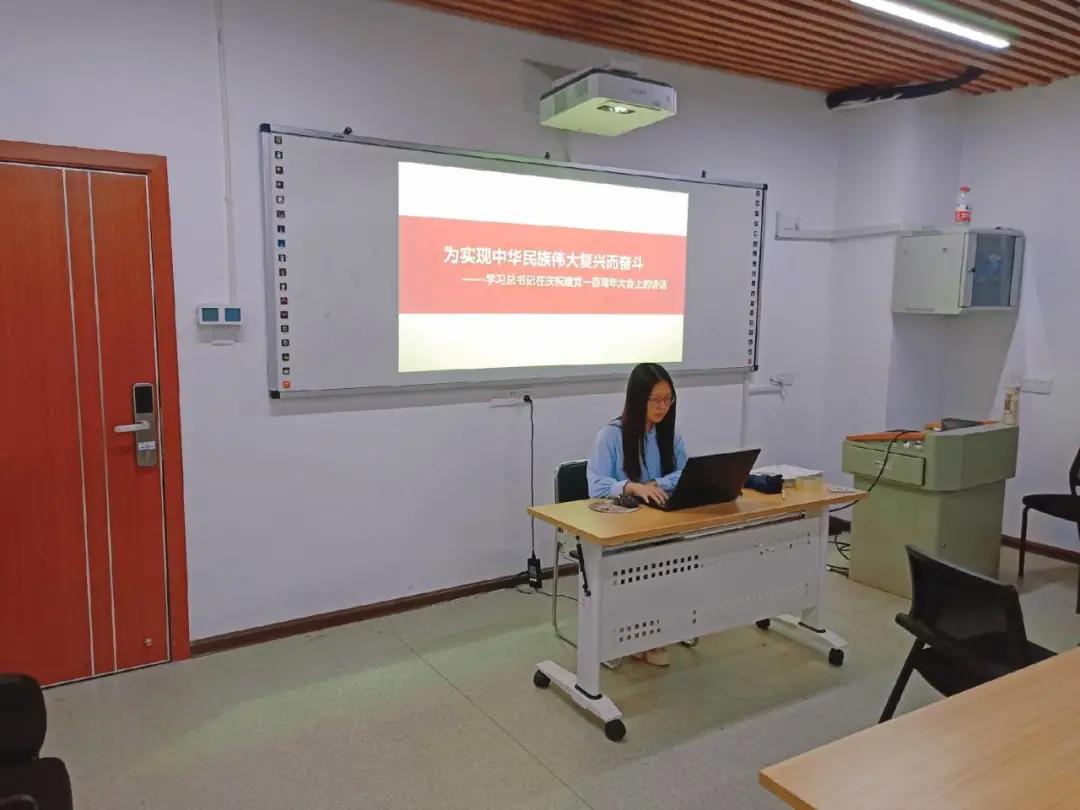 在会上,首先由左振铭同志带领党支部成员认真学习习总书记在庆祝中国共产党成立100周年大会上的重要讲话,学习习近平新时代中国特色社会主义思想,明确习总书记讲话的重大意义和重要地位,习总书记讲话的精髓和主要内容,全面学习落实总书记重要讲话精神。引导同学们坚定理想信念,增强历史自觉,弘扬优良传统,加强党性锤炼,发挥党员的模范先锋作用。