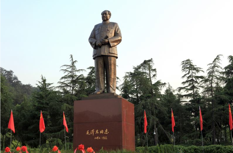 天下韶山,伟人故里。我们先行来到毛泽东广场,周围青松翠竹掩映,群山拱护。铜像身躯高大,体态稳健,面带微笑而又沉思,成功地塑造了领袖在开国大典时的伟人风采。前来瞻仰毛泽东的游人更是络绎不绝。毛泽东铜像是按主席在开国大典上的形象设计的,坐西南、朝东北,主席身躯伟岸,手执发言稿,身着中山装,双目炯炯,微露笑容,神采奕奕。毛泽东广场是一个人民群众表达对毛主席崇敬、追思、纪念的主要场所。游人们向主席问候、鞠躬、献上花圈、挥舞着手中的小国旗,对主席浓厚的敬意更是感染着前来韶山的每一位支部同志。