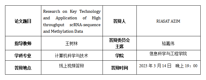 [4] R. Azim and S. Wang, “Cell-specific gene association network construction from single-cell RNA sequence,” Cell Cycle, pp. 1–16, Sep. 2021, doi: 10.1080/15384101.2021.1978265. (SCIE, Q2, IF: 5.173)