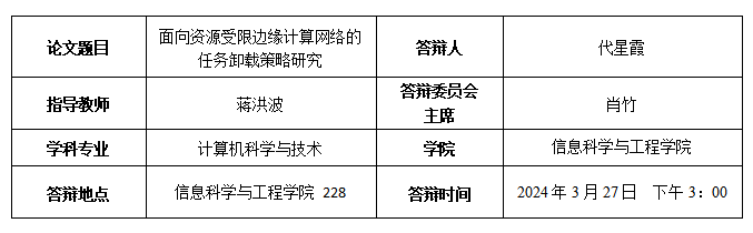 蒋洪波、代星霞、肖竹、曾凡仔,一种复杂边缘环境智能网络协作式任务卸载方法、设备及介质,(实审,导师第一作者,本人第二作者)