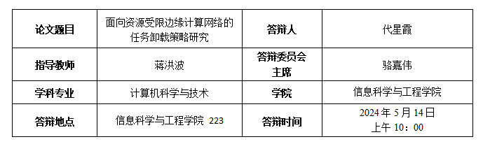 蒋洪波、代星霞、肖竹、曾凡仔,一种复杂边缘环境智能网络协作式任务卸载方法、设备及介质,(实审,导师第一作者,本人第二作者)