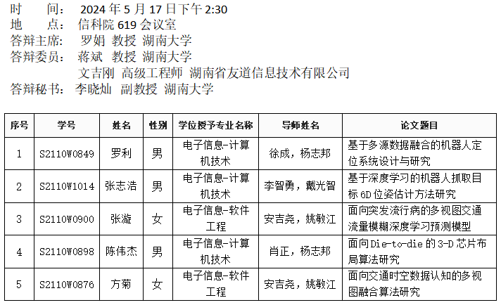 百合漫画 (计算机工程系)2024年5月17日硕士答辩公告