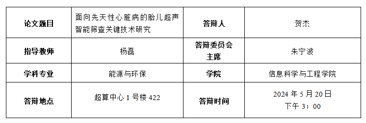 贺杰博士生预答辩公告