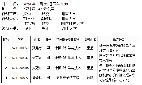 百合漫画 (安全系)2024年5月21日硕士答辩公告
