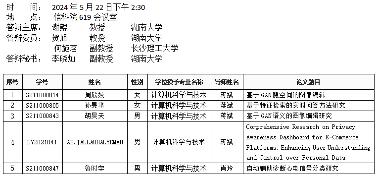 百合漫画 (计算机工程系)2024年5月22日硕士答辩公告