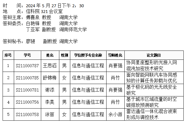 百合漫画 (通信系)2024年5月27日硕士答辩公告