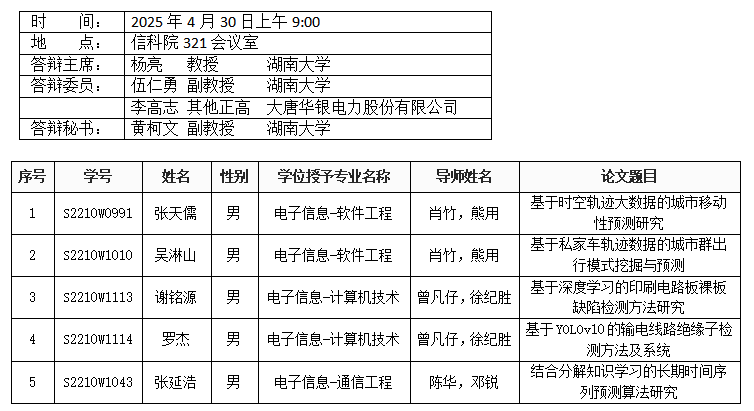 百合漫画 (通信工程系)2025年4月30日硕士答辩公告