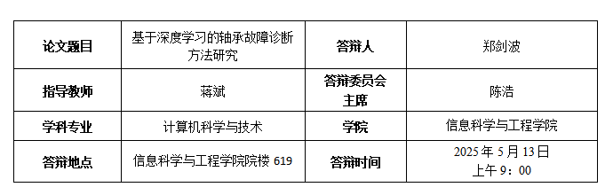 [4] Zheng Jianbo, Yang Chao, Zheng Fangrong and Jiang Bin. A Rolling Bearing Fault Diagnosis Method Using Multi-Sensor Data and Periodic Sampling[C]//2022 IEEE International Conference on Multimedia and Expo. 2022: 1-6. (一作,CCF B类会议)