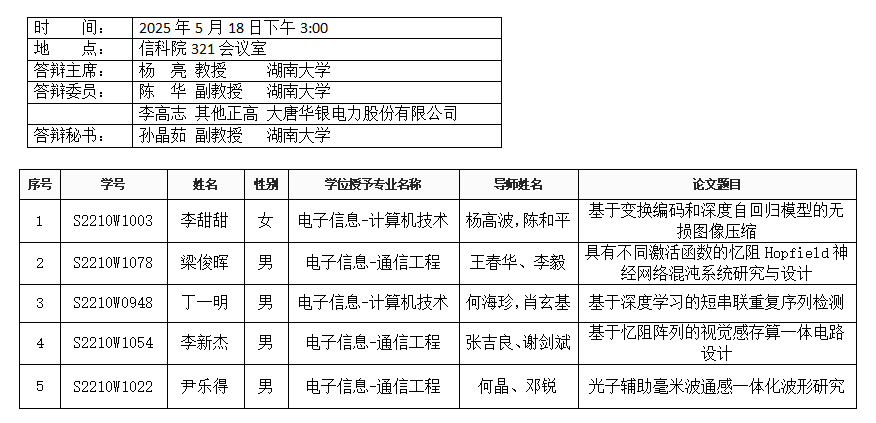 百合漫画 (通信工程系)2025年5月18日硕士答辩公告