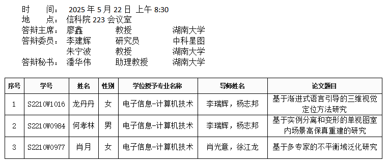 百合漫画 (智能计算系)2025年5月22日硕士答辩公告