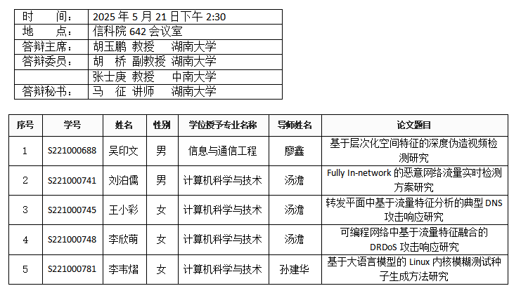 百合漫画 (安全系)2025年5月21日硕士答辩公告