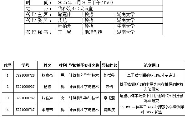 百合漫画 (计算机科学系)2025年5月20日硕士答辩公告(2)