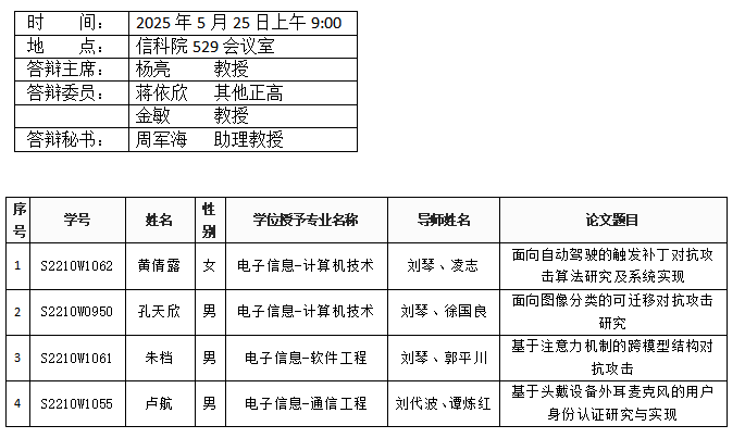 百合漫画 (软件工程系)2025年5月25日硕士答辩公告
