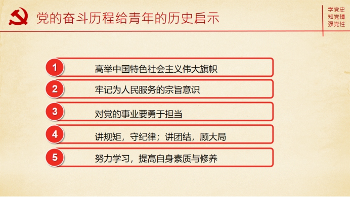 本次党课,同学们学习了党史,感知了那段红色的岁月,革命前辈的热血换来了我们现在安定的生活,相信在党史的鼓舞下,同学们能不忘初心,砥砺前行,不断奋斗,成就精彩的人生。